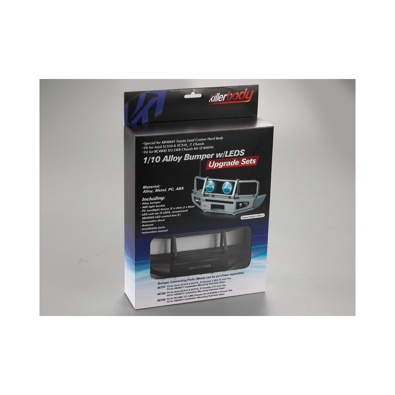 Killer Body Alloy Bumper w/LEDS Upgrade Sets Matt-black (Land Cruiser 70) Fit for 1/10 Truck and SUV Axial SCX10 & SCX10_ⅡChassis RC4WD TF2 LWB Chassis Kit