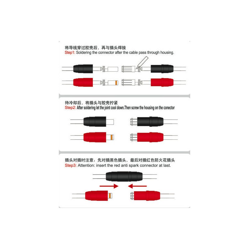 No more spark when you connect big LiPo pack to your ESC with these connectors !
