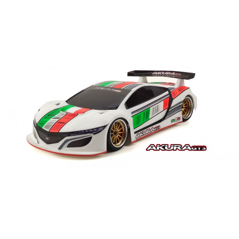 Akura GT transparent body with stickers and screws. Fits 1/10 Touring cars.