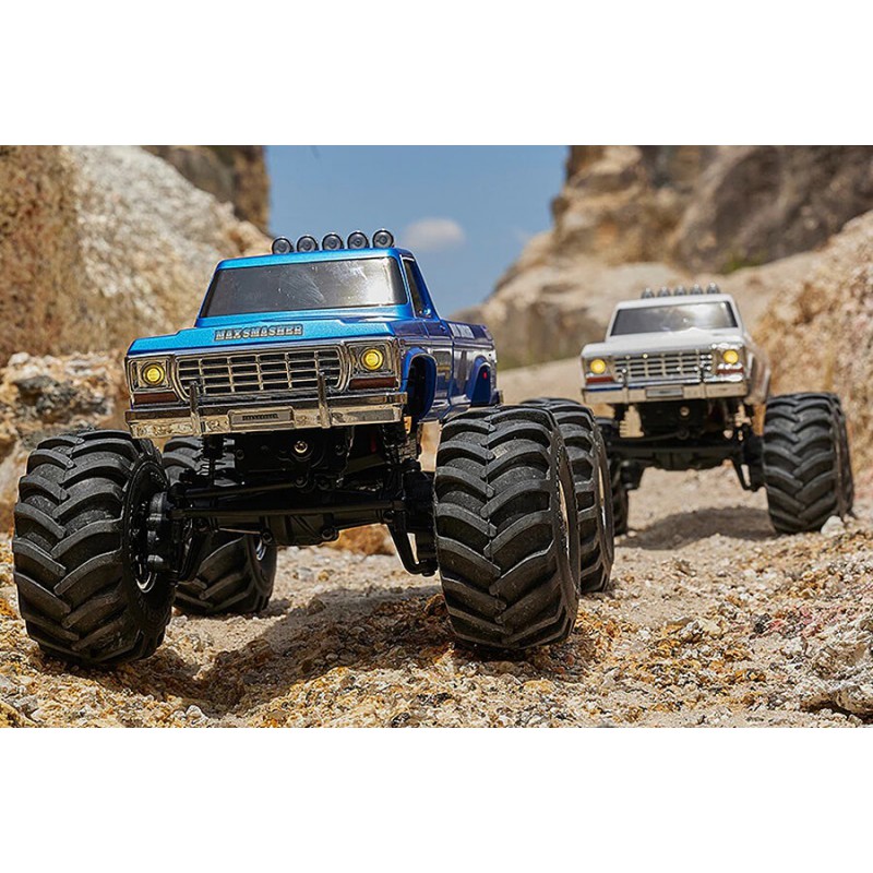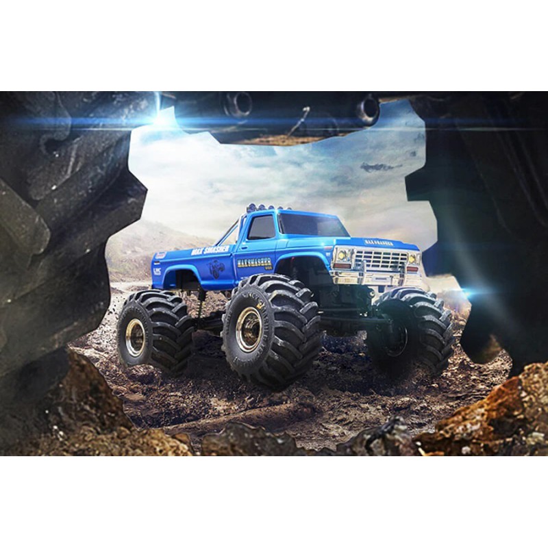 The SMASHER V2 adopts the FCX24 chassis. The huge hollow tires provide excellent shock absorption. The two-speed gearbox, controlled by the third channel, can not only provide strong torque, but also support high-speed off-road driving. The front and rear axles are equipped with planetary gear differentials by default, which is conducive to high-speed off-road driving, posture simulation and outstanding cornering performance. Meanwhile, straight axle parts without differentials are also provided for users to replace by themselves. When the straight axle parts are replaced, the differential function of the front and rear axles is lost but its climbing ability is completely released, and no matter whether it is rocks or mud, it can pass through powerfully. Of course, the hybrid solution of installing a straight axle on the rear axle and installing a differential on the front axle is also an option, which not only enables high-speed off-roading, but also retains a certain climbing ability.