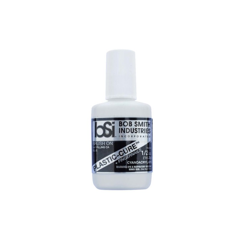 PLASTIC-CURE™ is a gap-filling formulation of CA that works best on plastics. It is packaged in a bottle with a brush built into its top, which in many cases is an easier way to apply the CA. As long as brush is put back into the bottle after use, the bristles of the brush will not harden. Care must be taken, however, not to introduce foreign material into the bottle. The brush should not be used, for example, to apply CA to wood that has been freshly sanded. Plastic-Cure will also bond wood, but its brush applicator at times will not be the best way to apply it. Plastic-Cure is superior for the application of false nails and wraps on fingernails, where its brush is the preferred method of application.