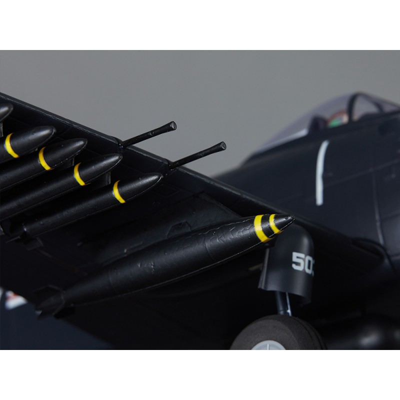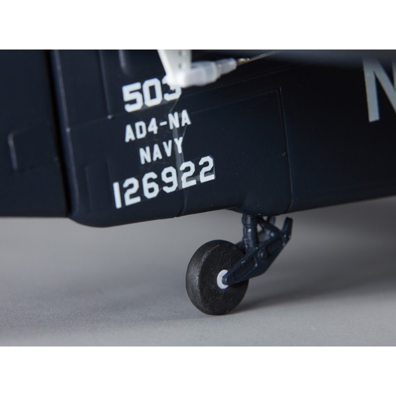 The Derbee A-1 Skyraider is very compact with 80cm wingspan, but is in no way inferior to the original in terms of scale details. Whether dummy engine, weapons, rivets or landing gear - in the air the model looks like a real one.