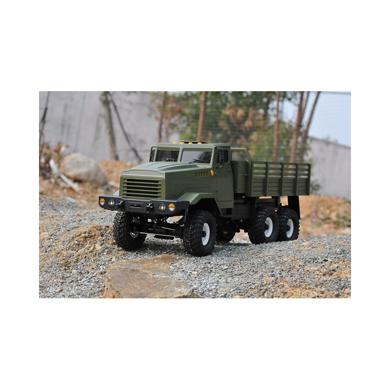 This is a radical 1:12 scale 6x6 military off-road truck, delivered as a build kit, with a high torque 35t motor, a light system and many scale details.
