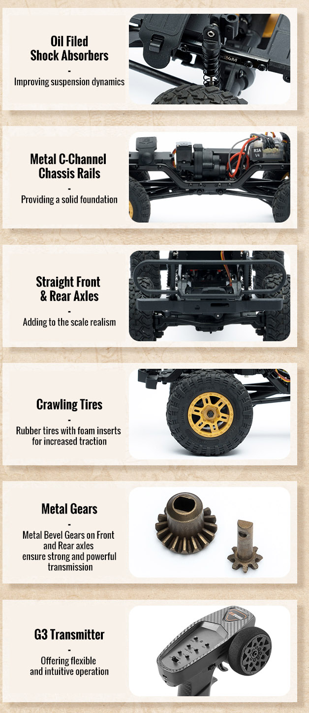 Low Gear : Enhancing the ability to navigate rugged and steep terrain by delivering robust torque for realistic, low speed crawling.