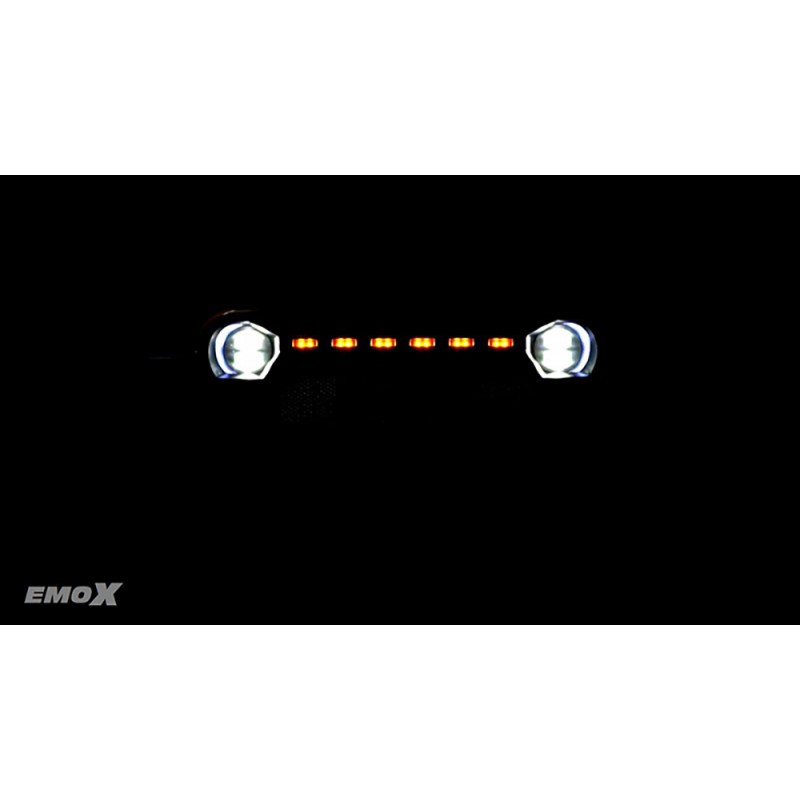 The Rhino EMO X uses the appearance of a classic hard off-road vehicle, with a competitive style of modification, with a simulated racing driver, a hidden shell buckle, a full-size spare tire, tough and aggressive. The shell is made of high-quality thickened PC materials. The vehicle is standard equipped with a cool flash lighting system independently controlled by a single channel, which is a single bright, full bright, flash and flash switch.