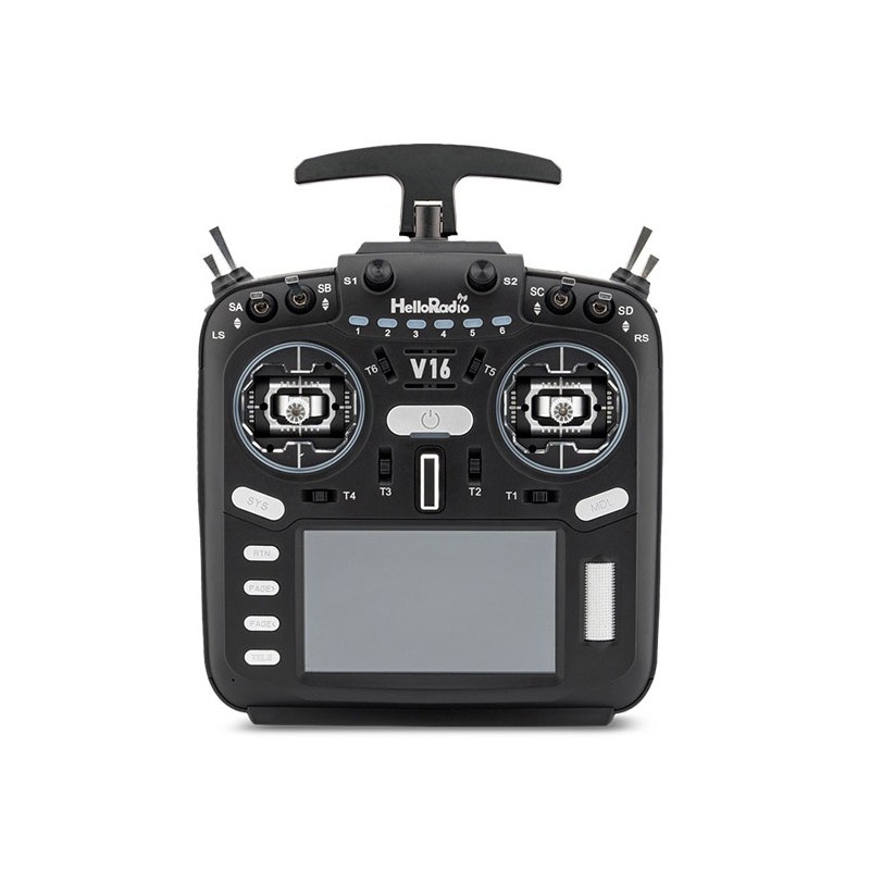 The HelloRadio V16 MAX remote control combines cutting-edge technology with sophisticated design, giving you complete control. Equipped with the open-source EdgeTX system, an LED display, and an innovative AI voice assistant, it opens up entirely new possibilities. Intelligent safety features, flexible module compatibility, and precise motion control ensure you maintain complete control at all times. Another highlight is that the LEDs around the gimbals can be programmed in a variety of colors.