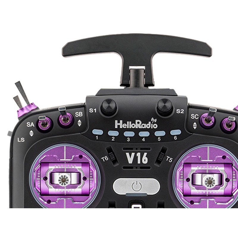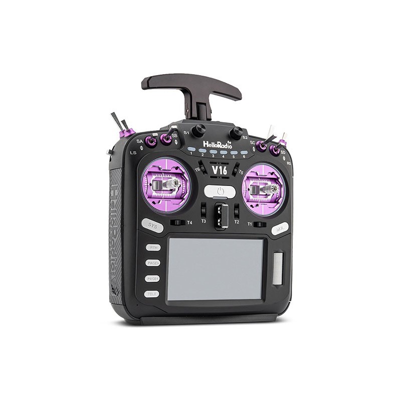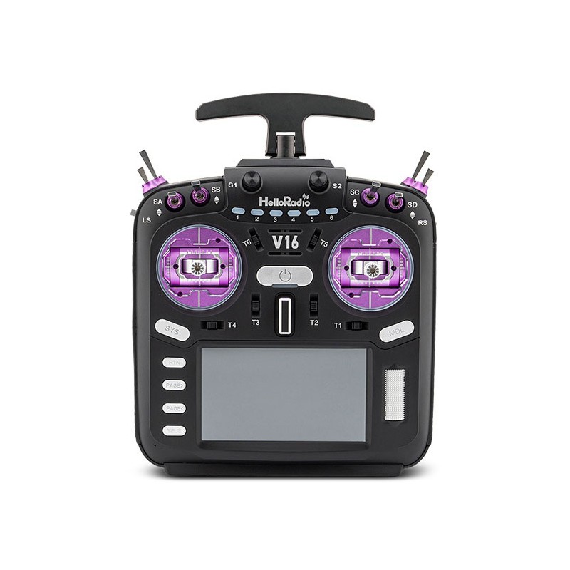 The HelloRadio V16 MAX remote control combines cutting-edge technology with sophisticated design, giving you complete control. Equipped with the open-source EdgeTX system, an LED display, and an innovative AI voice assistant, it opens up entirely new possibilities. Intelligent safety features, flexible module compatibility, and precise motion control ensure you maintain complete control at all times. Another highlight is that the LEDs around the gimbals can be programmed in a variety of colors.