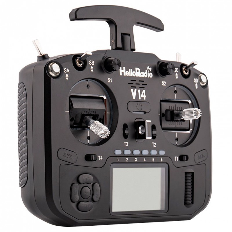 The HelloRadio V14 PRO remote control combines cutting-edge technology with sophisticated design, giving you complete control. Equipped with the open-source EdgeTX system and an LED touchscreen, it opens up entirely new possibilities. Intelligent safety features, flexible module compatibility, and precise motion control ensure you maintain complete control at all times.