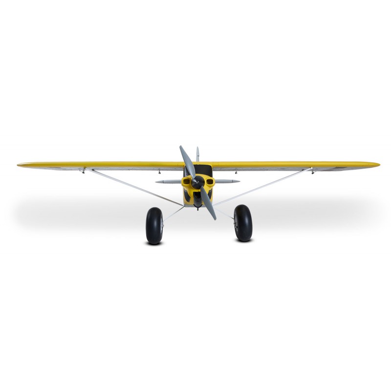 The XCub is the perfect STOL aircraft. Thanks to its large landing flaps and stable landing gear, the model aircraft is ideal for taking off and landing on extremely small and short surfaces. The large balloon tires allow the XCub to take off and land effortlessly even on uneven terrain.