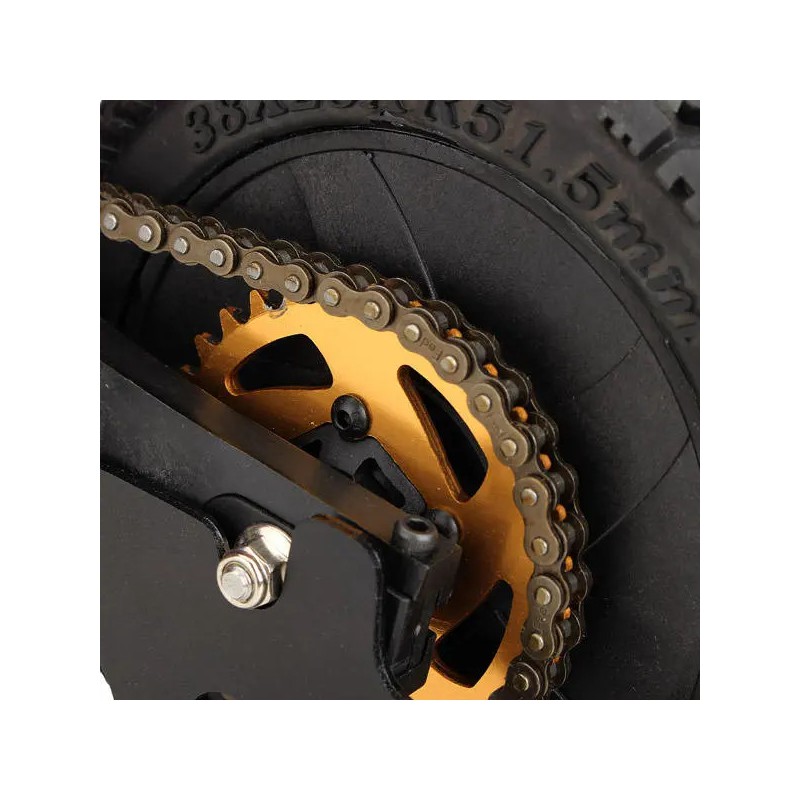 The anodized aluminium chassis and metal chain driver make the bike strong and durable. It is also equipped with a rear oil shock absorber.