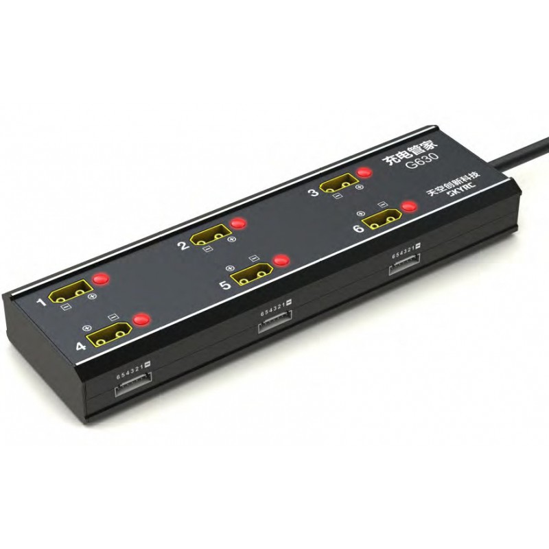 SkyRC G630 charging nanny is an automatic management equipment for LiPo battery charging, which is compatible with SkyRC PC1080 charger. With it user can charge 6 LiPo batteries sequentially. Battery with higher remaining capacity will be charged first.