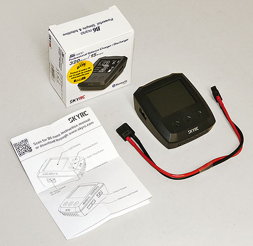Comes in a small box, the B6 nano is only accompanied by a cord with XT60 connectors and his notice. Note that a notice in french is downloadable from the page on this site. The cord can be used to feed it if you use a workshop power supply like that of 380 W SkyRC. Otherwise, it may also be used as charge lead.