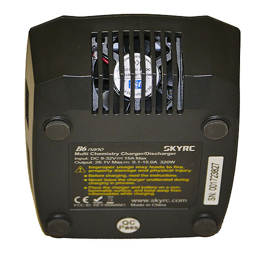 The nano B6 needs to be DC powered and accepts a wide voltage range : 9 to 32 V ! On the track, a car battery of 12 Volt, as well as of large truck 24 Volt battery can be used. With this type of power supply, there is no problem to have 350 Watt which is required to make full use of the charger.