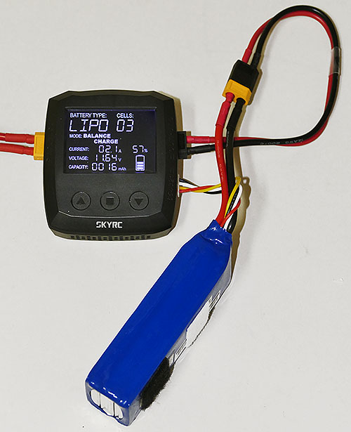 It remains to connect the battery and balancing intake in the case of a pack LiXX, and touch and hold the central key to launch the charging.