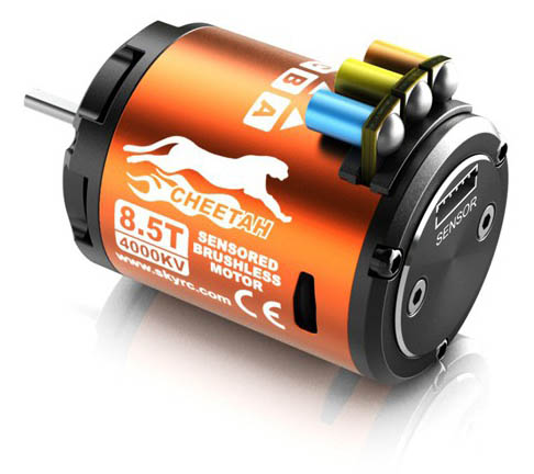 Five different combos are available with differents windings and KVs : 8.5T 4000Kv, 10.5T 3250Kv, 13.5T 2590Kv, 17.5T 1870Kv and 21.5T 1600Kv.