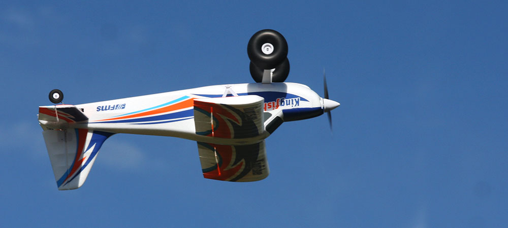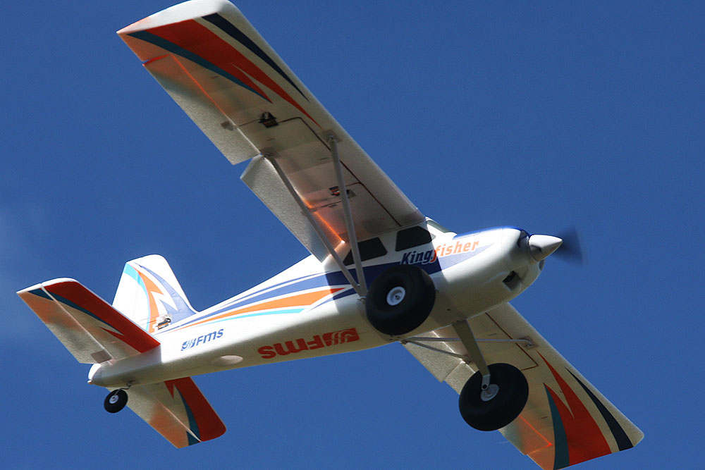 The Kingfisher is much more comfortable on not so basic tracks, grass, dirt or other, thanks to its huge wheels. Thus, it is usable everywhere. With limited travels, it is a perfect beginners plane. But when the driver takes insurance, and uses the flaps the travels can be increased and the Kingfisher becomes a real STOL (Short Take-Offs and Landings) plane, able to take off in less than 5 meters, to fly slowly and to land short after a steep approach. It is also able to pass basic aerobatic figures.