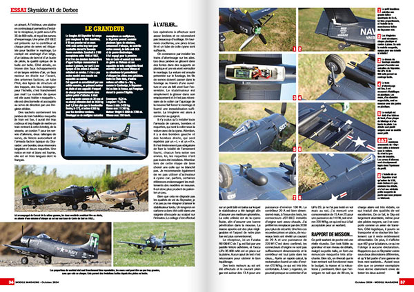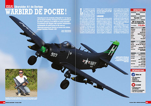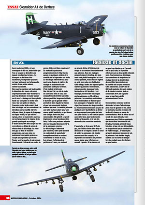 Tested by Charly Bordier and photographed by his brother Rémy, the Derbee Skyraider clearly won over this team of Modèle magazine testers. Its quick and easy assembly, its amazing flying qualities for such an accurate and fully weaponised model, and its inimitable look are all perfectly highlighted in this test.