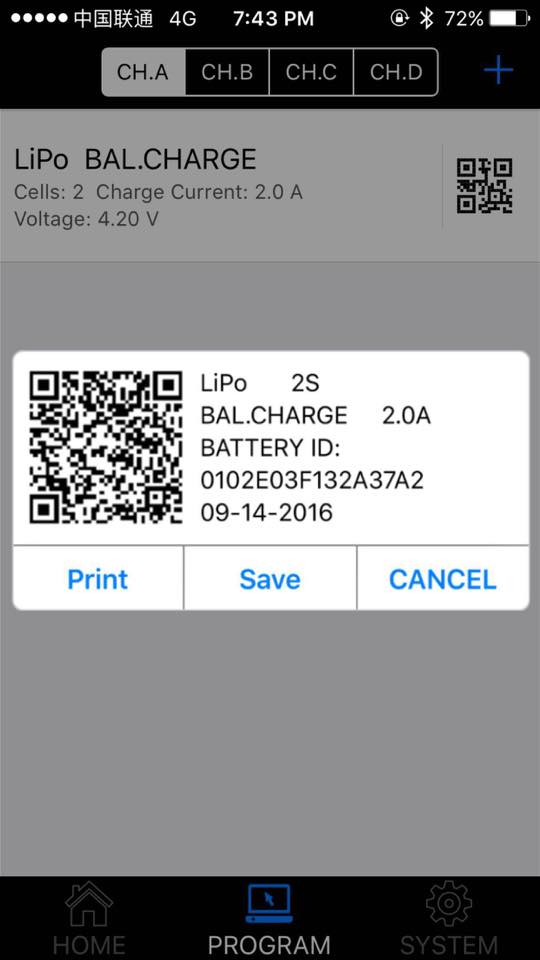 For the Q200, Skyrc goes further and offers, when you save a charge program, to print a label with a flashcode.