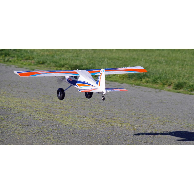 Le jeu de roues surdimensionnées facilite les décollages et les atterrissages depuis l'herbe ou des pistes en graviers.