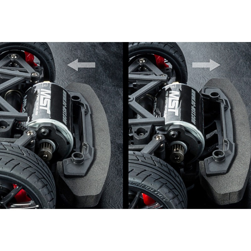 La série 1/10 TCR à châssis rigide de l'équipe MST est dotée de suspensions indépendantes sur les quatre roues et de divers réglages d'empattement (0mm / + 6mm / -6mm des différents châssis), livrée avec une véritable carrosserie de voiture maquette. La transmission intègre trois modes FF / MR / RR pour se rapprocher de la configuration réelle de la voiture, laissant ainsi aux pilotes le plaisir et l'enthousiasme les plus originaux de la RC.