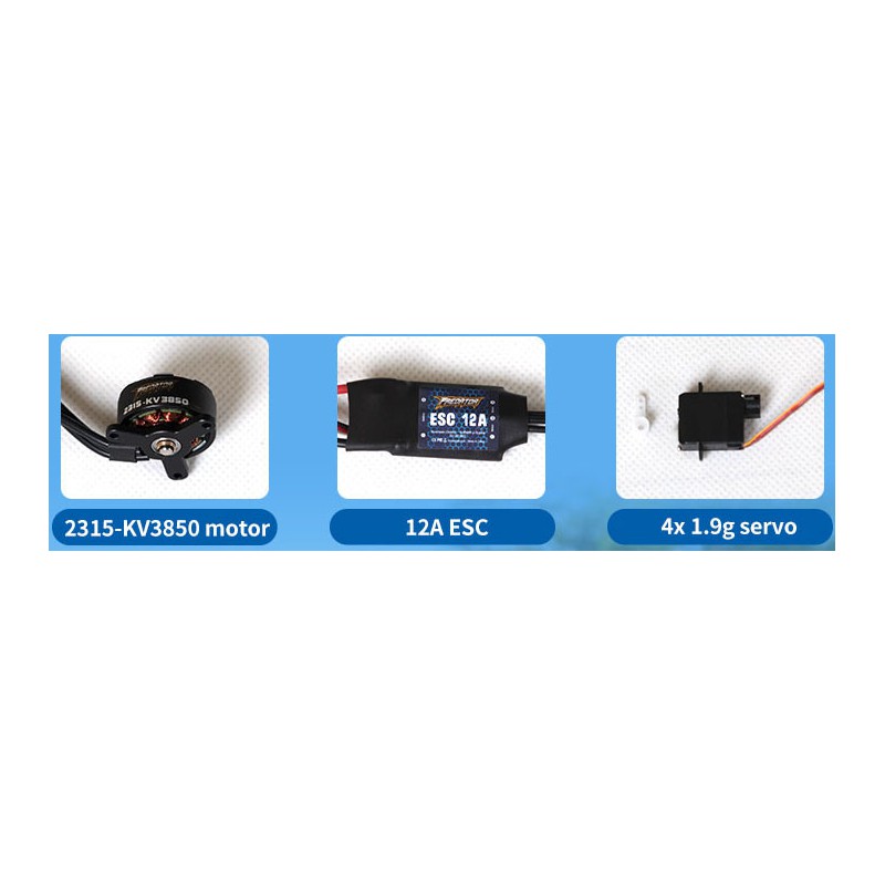 Les débutants ont tout pour se réjouir ! Le Ranger 850 mm FMS a tout ce qu’il faut pour voler ! Un moteur 2315-Kv3850 et quatre micros servos de 1,9 g, donnant un avion au poids plume de 305 g aux performances incroyables. Volez dans un petit parc, sur un terrain de basket ou dans votre arrière-cour !