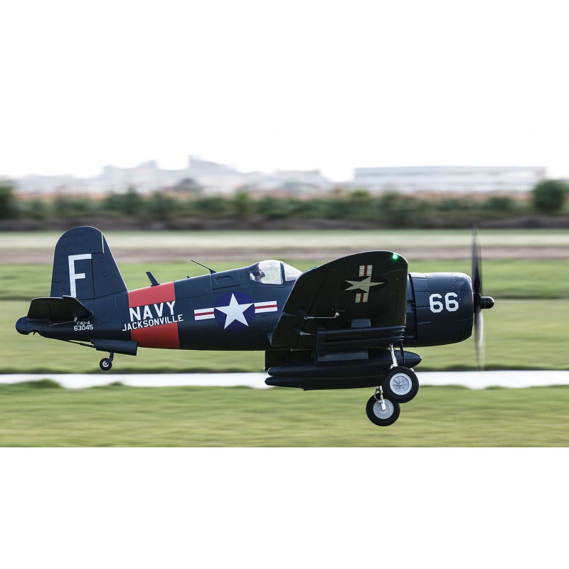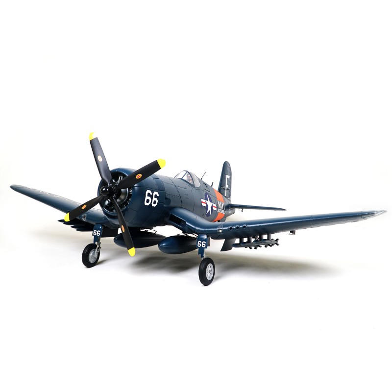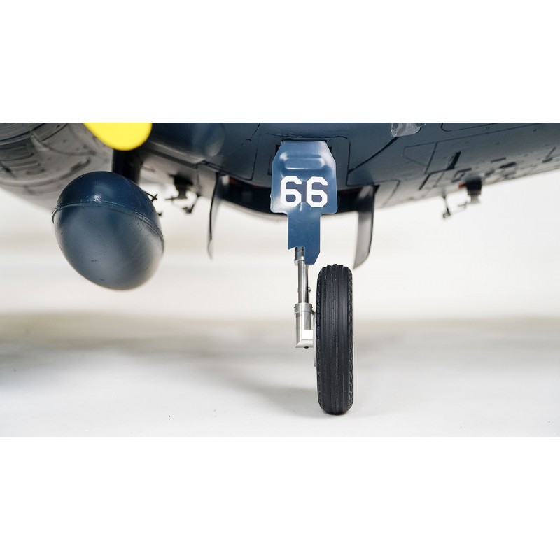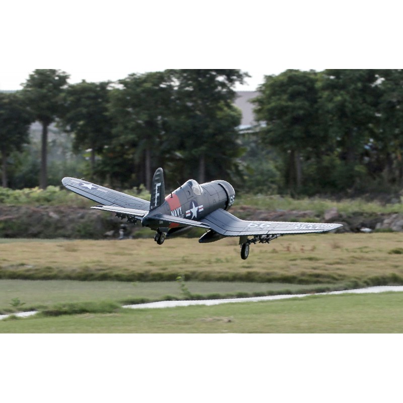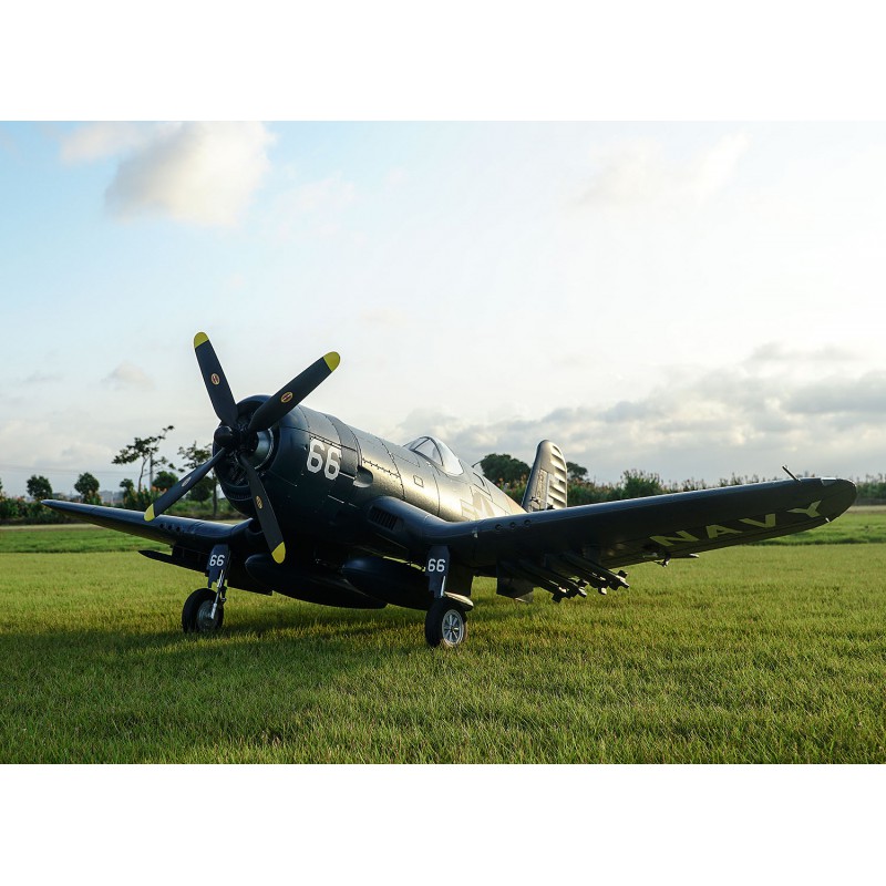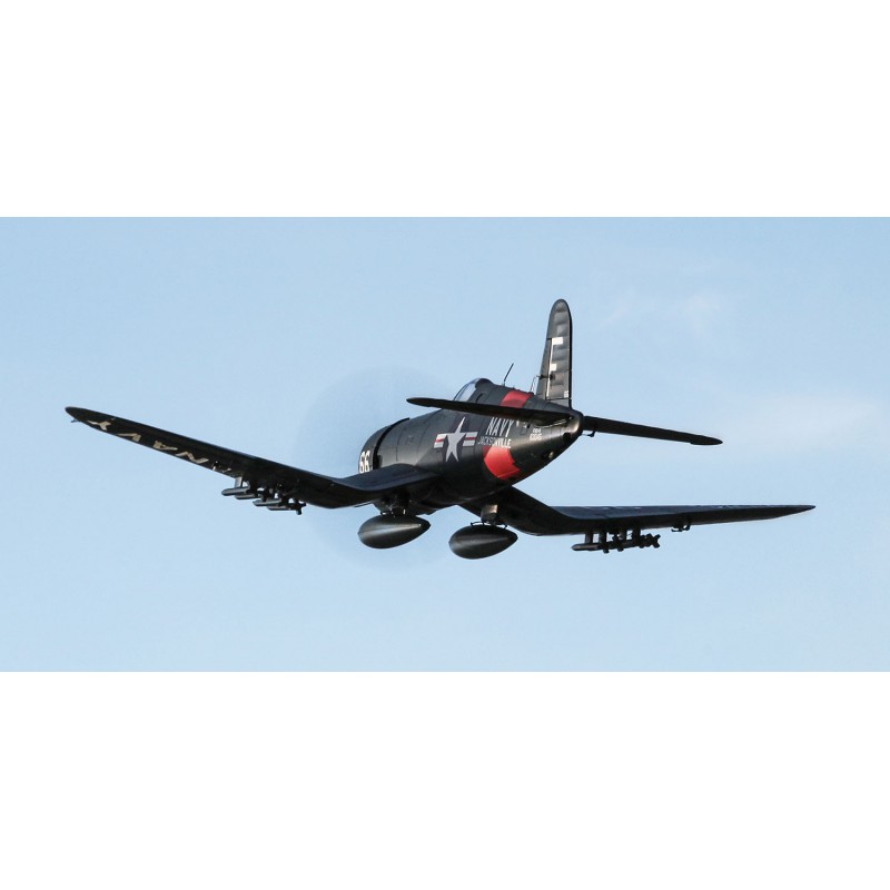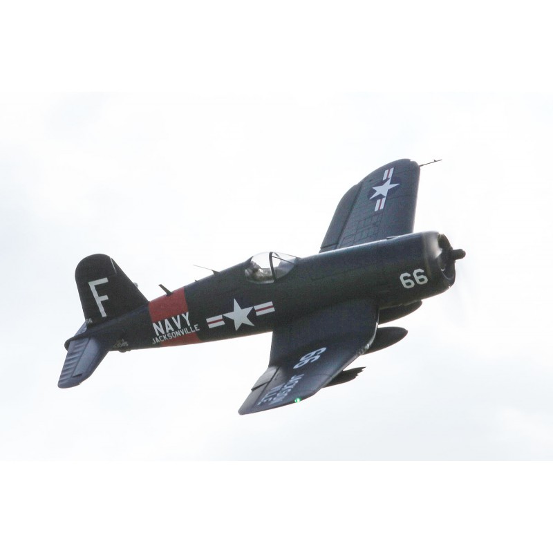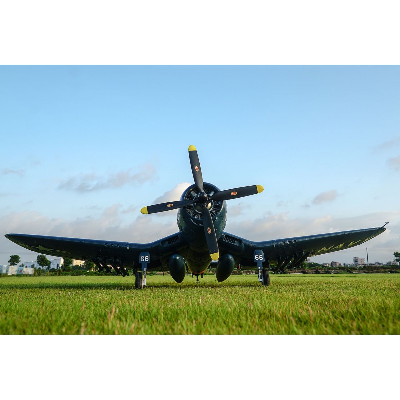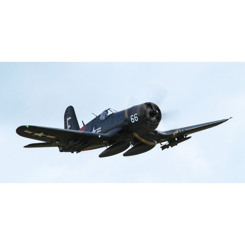 Propulsé par un ensemble en 6S composé d’un contrôleur Hobbywing 80A, d’un moteur 5060 et d’une hélice quadripale 18x11, le F4U V3 offre un domaine de vol particulièrement étendu : Une vitesse maximale à faire grimper l’adrénaline associée à des qualités de vol lent dignes d’un trainer font du Corsair un des warbirds les plus faciles sur le marché actuel.