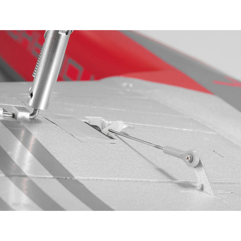 Le Futura est assurément une agréable surprise pour ceux qui restent hésitants entre choisir un jet de vitesse et un jet de voltige. Il offre des vitesses élevées, une grande maniabilité et d’excellentes qualités de vol, à la grande satisfaction de pilotes souhaitant profiter de styles de vol variés comme du vol en toute liberté, l’entraînement à la compétition et la voltige. L’ensemble de propulsion se compose d’un moteur brushless à fort couple 2840-kv3150, d’un contrôleur 40A à haute stabilité et d’une batterie LiPo 4S de 2200 à 2600 mAh (vendue à part), ce qui, couplé à 8 servos 9 grammes de haute précision installés dans les ailes, les empennages et pour diriger la roue avant, permet au pilote de s’essayer à diverses techniques de pilotage et de profiter du plaisir du vol à grande vitesse. De plus, les ailes et les empennages du Futura ont été pré-équipés de bandes de renfort, et la cabine est fermement tenue en place par un verrou, ce qui permet de réaliser des virages serrés, des tonneaux et des flips sans inquiétude. Le train métallique usiné CNC, à roues tirées, est extrêmement précis et robuste, protégeant l’avion des atterrissages durs.