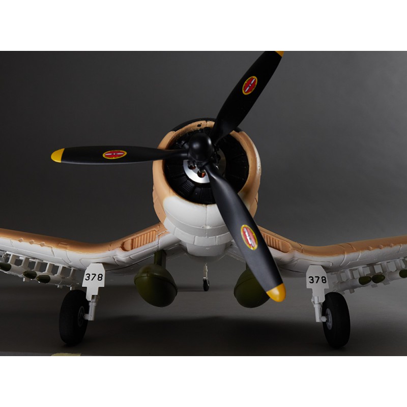 Le F4U Corsair est propulsé par un puissant moteur brushless 1300 Kv et par un contrôleur brushless 20 A. En combinaison avec une batterie LiPo 2S, le warbird a assez de puissance pour réaliser des figures spectaculaires.