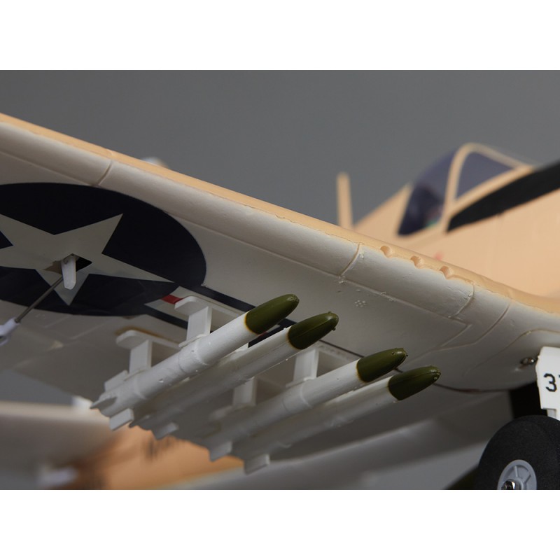 A propos : Le F4U Corsair fait partie de la gamme des mini-warbirds Derbee. En plus du F4U, un A-1 Skyraider et un P-51 Mustang sont aussi disponibles, à la même échelle et dans diverses couleurs.