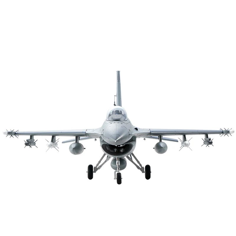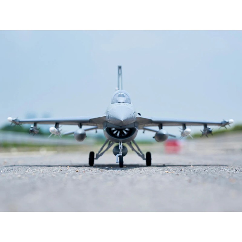 Le F-16 est livré équipé en usine avec une turbine de 64 mm à 11 pales, un moteur 2840-Kv3150 et un contrôleur 40 A. Il dispose de 6 servos 9 g digitaux qui exécutent les commandes venant du récepteur avec précision, offrant d’excellentes performances à haute vitesse et un vol stable aux basses vitesses afin d’aider les débutants en pilotage d’avions à turbine électrique.