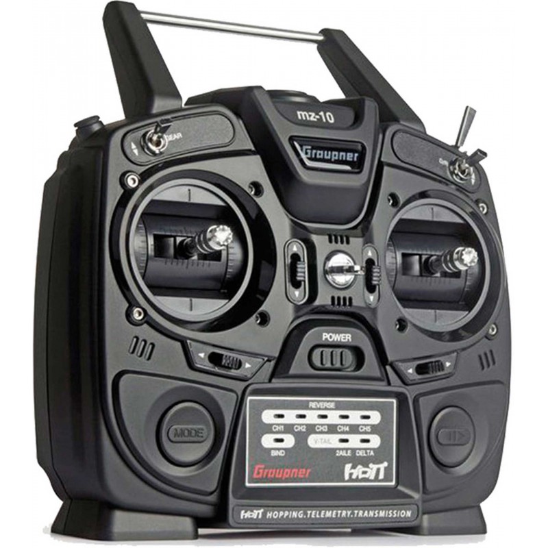 La télécommande Graupner mz-10 est la télécommande économique et pourtant très fiable. Les 5 fonctions de commande permettent de piloter de nombreux modèles de vol. Le mz-10 est équipé de la technologie Graupner HoTT, d'une gamme très élevée et d'une large plage de tension de fonctionnement (jusqu' à 4,8 volts). Des LED lumineuses indiquent les canaux, l'état de liaison, ainsi que le réglage du modèle de vol (4 types: Normal, Delta, V-Tail ou 2 ailerons). Le mz-10 dispose de 4 modes stick.