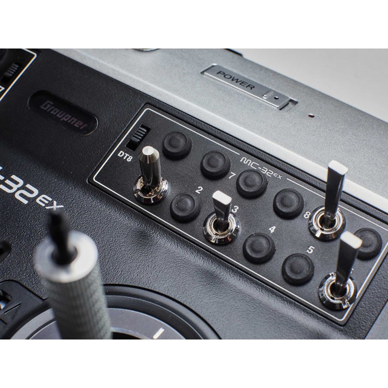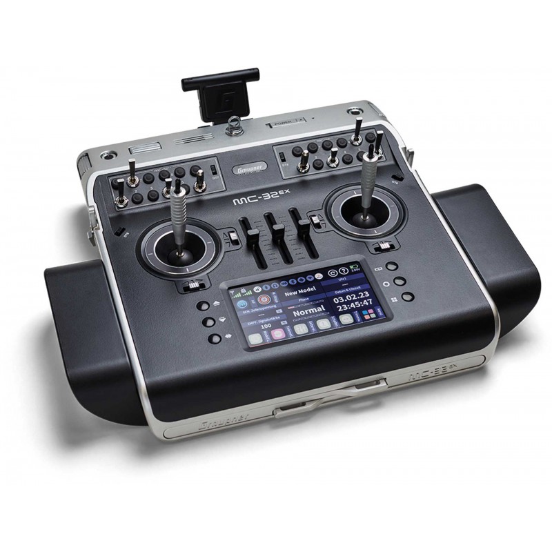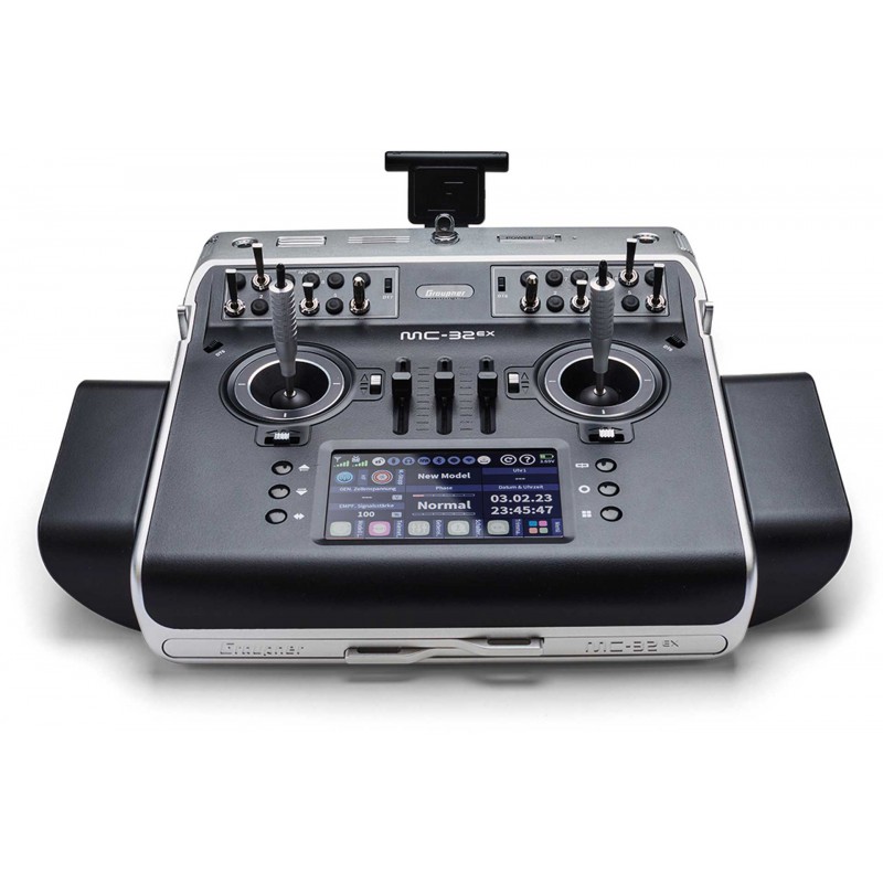 L'émetteur pupitre Graupner mc-32 HoTT avec ses 32 canaux est un émetteur haut de gamme pour les vrais professionnels et les modélistes qui apprécient une sécurité maximale, une télémétrie stable, une programmation intuitive et une fonctionnalité maximale.