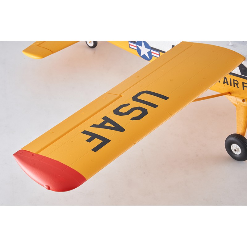 Chaque détail a été soigneusement reproduit, du moteur radial et des rivets du fuselage à l'antenne et aux haubans des ailes principales. Le train d'atterrissage en fil d'acier est recouvert de carénages réalistes, offrant un équilibre parfait entre durabilité et apparence à l'échelle.