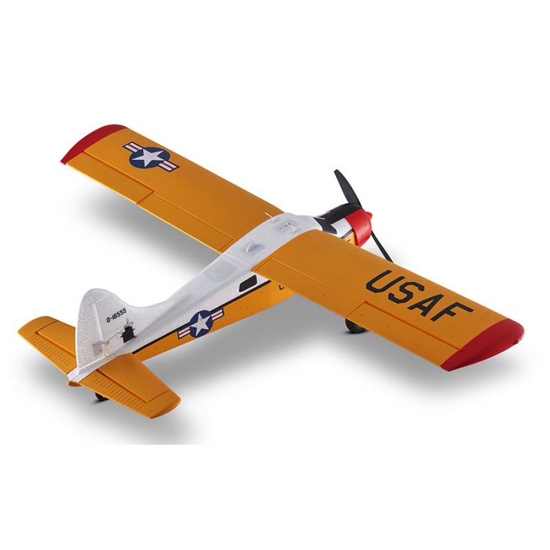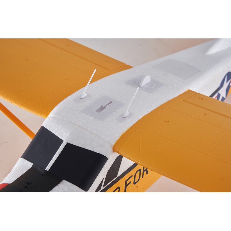Le moteur brushless 2S avec moteur 2315-KV3850 fournit une poussée silencieuse mais puissante et permet des vols stables même à faible vitesse. Quatre servos numériques 2g précis garantissent des réactions de commande exactes. Grâce à la conception à fermeture rapide sans outil, l'aile principale peut être retirée en quelques secondes seulement, ce qui est idéal pour le transport et le stockage.