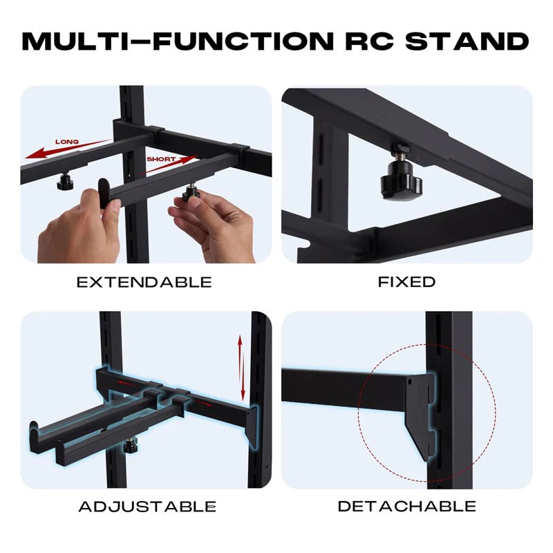 Que ce soit pour exposer votre collection de voitures RC, effectuer leur entretien ou les ranger après les avoir nettoyées, ce support pour voitures RC s'intègre parfaitement dans votre salon, votre bureau, votre garage, votre atelier ou même une salle d'exposition. Conçu pour répondre à vos besoins dans de multiples situations, c'est le complément idéal à votre équipement de modélisme RC.