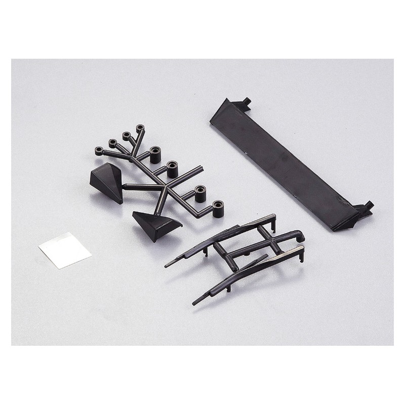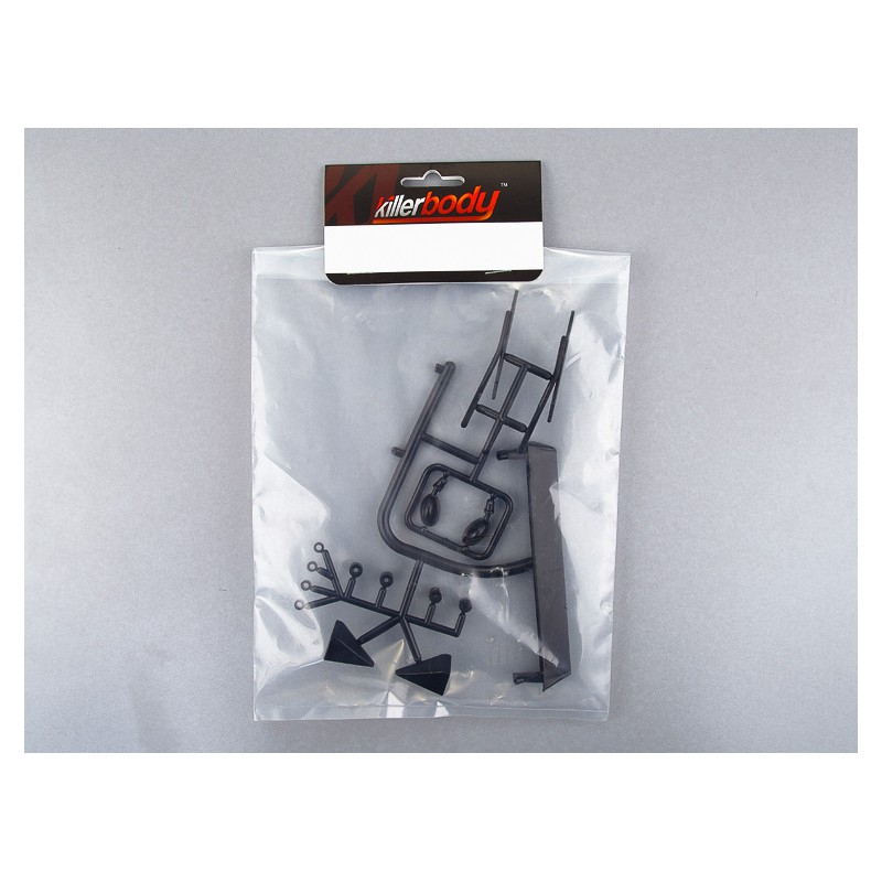 Jeu de pièces en plastique noir comprenant : Rétroviseurs, essuie-glaces, aileron arrière, autocollant pour miroir de rétroviseurs.