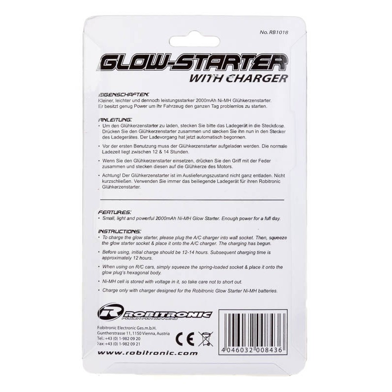 Chauffe bougie Robitronic avec accu NiMH 2000 mAh et chargeur mural.