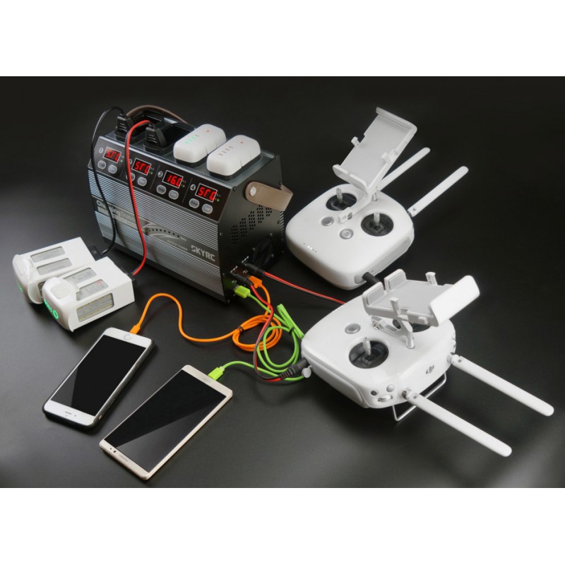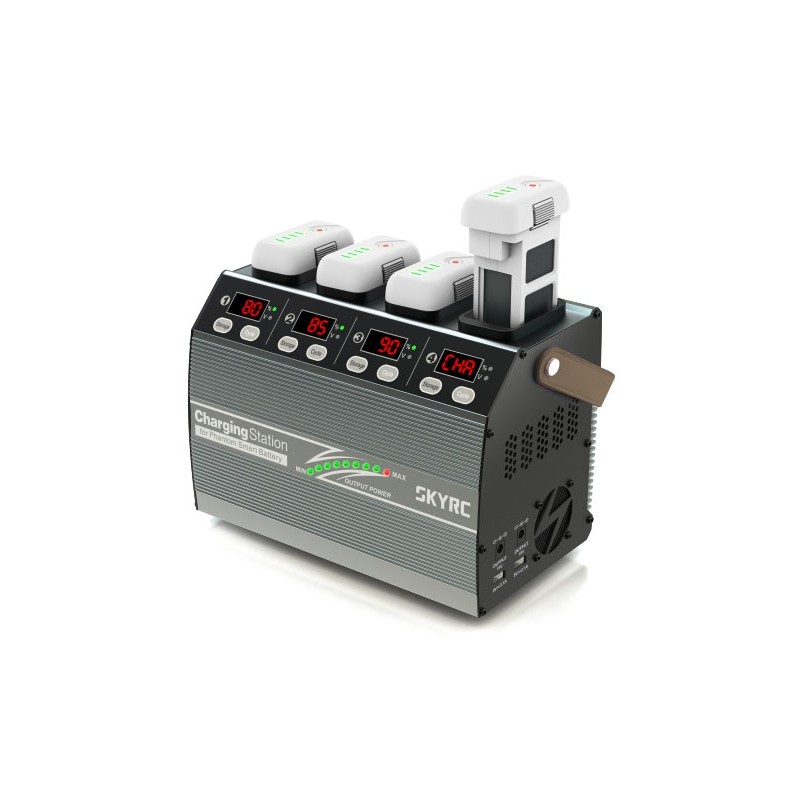 Station de charge SkyRC pour quatre accus "Smart battery" de DJI Phantom 3 et 4. Puissance : 4 x 100 W.