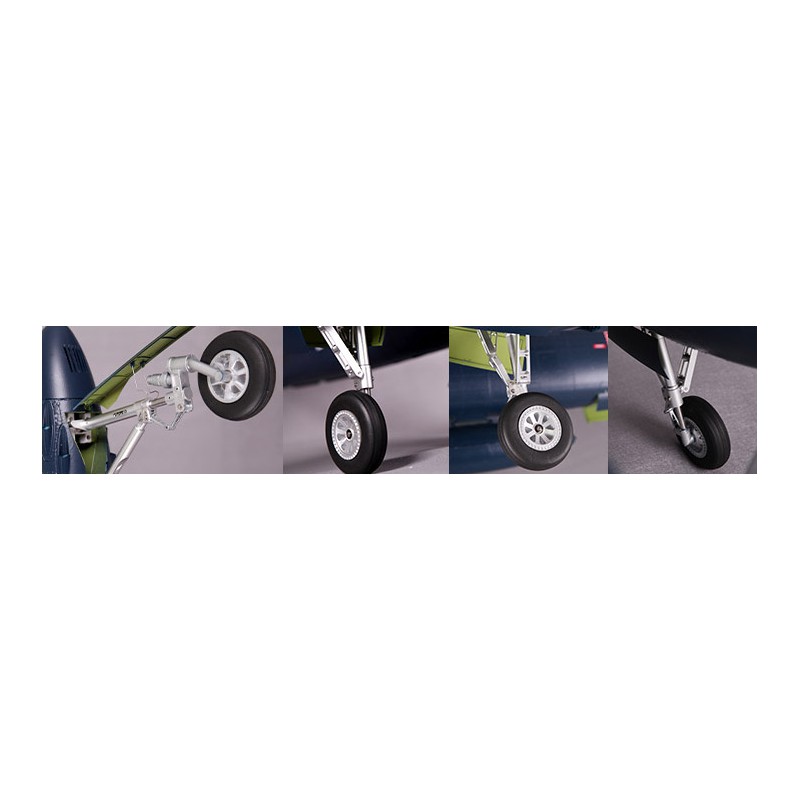 Le Tigercat est équipé du dernier système de train rentrant électrique avec protection contre les surintensités, des jambes de train raffinées, maquettes, en métal usiné CNC (la spécificité sans doute la plus remarquable est ce train qui est le plus fidèle que nous n'ayons jamais créé) capable de résister à des atterrissages pas toujours parfaits. La roue avant de 62 mm et les roues du train principal de 84 mm permettent d'utiliser aussi bien des pistes en dur que des bandes en herbe. La motorisation utilise des moteurs brushless 4250 avec un Kv de 440, un double contrôleur 60 A avec UBEC 10 A, offrant une puissance d'urgence pour les figures typiques des combats aériens quand ils sont alimentés par un accu LiPo 6S 5000 mAh 45C.