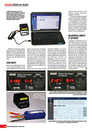 Enfin, 3 pages sont consacrées à un produit atypique, idéal pour préparer les batteries au repos après les vols ou les courses, c'est le déchargeur BD200 de SkyRC !