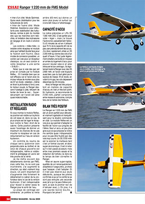 "Le Ranger en 1 220 mm de FMS est un avion parfait pour débuter, et vraiment agréable et tranquillisant pour la double commande en club. Le module Reflex est un vrai plus qui permet d’adapter la facilité de l’avion aux progrès de l’élève"