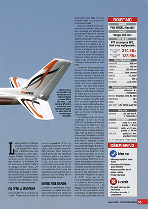 - Une légende indique que l'émetteur livré en mode 1 peut être modifié en mode 2 (uniquement par un modéliste expérimenté)… C'est exactement l'inverse, le Ranger 850 mm RTF est uniquement livrable en mode 2.