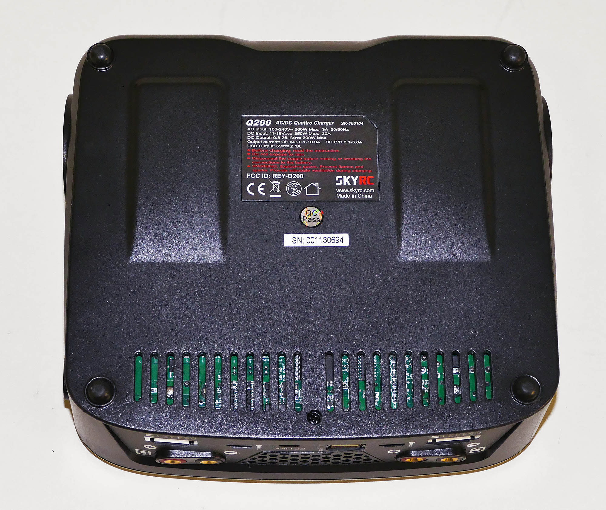 Les essais réalisés avec le Q200 n'ont montré aucun point faible, il est bien protégé contre les erreurs de manipulations ou de programmation et vous alerte avec des messages faciles à comprendre. Il est idéal pour les modélistes qui doivent charger de nombreux packs avant de se rendre sur le terrain grâce à sa capacité à charger simultanément 4 packs. Simplement, si la puissance totale est de 200 watts, il faut garder en tête que c'est 100 W maxi sur un canal, et donc que de très gros packs (genre LiPo 6S 5000 mAh) ne pourront pas être chargés sous 1C et qu'il faudra alors un peu plus de temps. Mais avec des packs du style 3S, il est possible de charger simultanément deux packs sous presque 8 A ou 4 packs sous 4A, de quoi être vite paré pour l'action ! Bref, c'est un chargeur dont vous ne pourrez rapidement plus vous passer !
