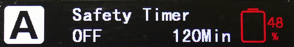 En appuyant successivement sur "DEC", on peut afficher de nombreux autres paramètres. Voici par exemple la valeur de la minuterie de sécurité.