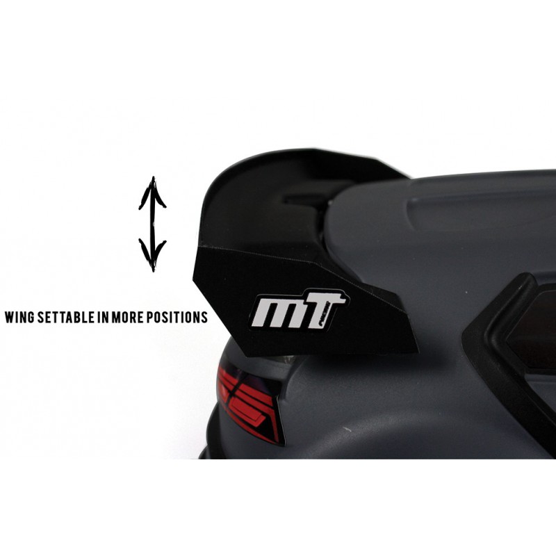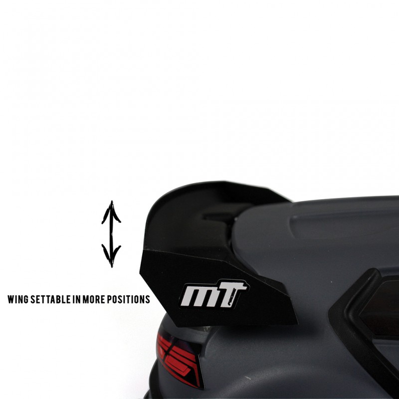 A new rear wing that can be mounted with two fixing points and this allows you to move the wing higher or lower if necessary.