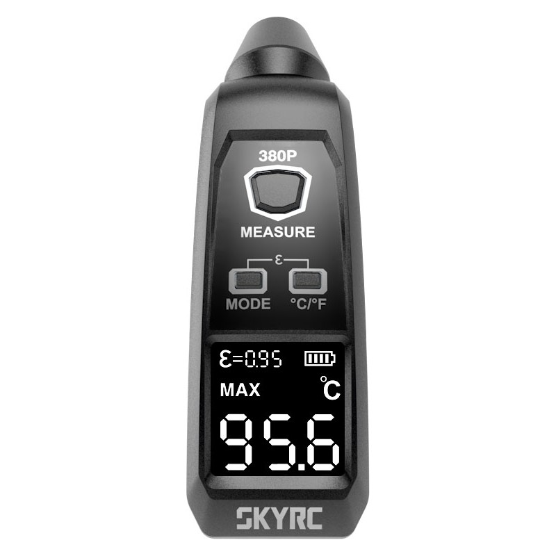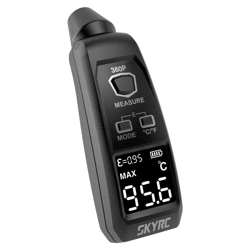 SkyRC has engineered the ITP380 temperature measuring with accuracy down to the 0.1 °F and the object temperatures ranging from -40°F (-40°C) to 716°F (380°C).