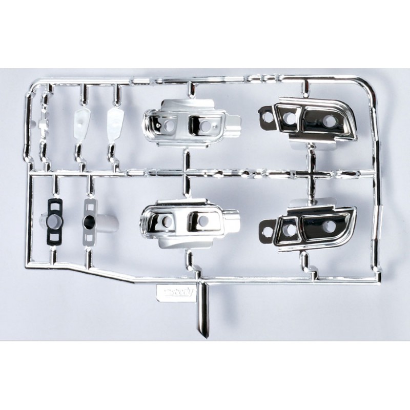 2 Front light buckets, 2 rear light buckets, 2 exhaust pipes, 2 wing mirror glasses, 1 rear car badge for Killer Body 2011 Camaro
