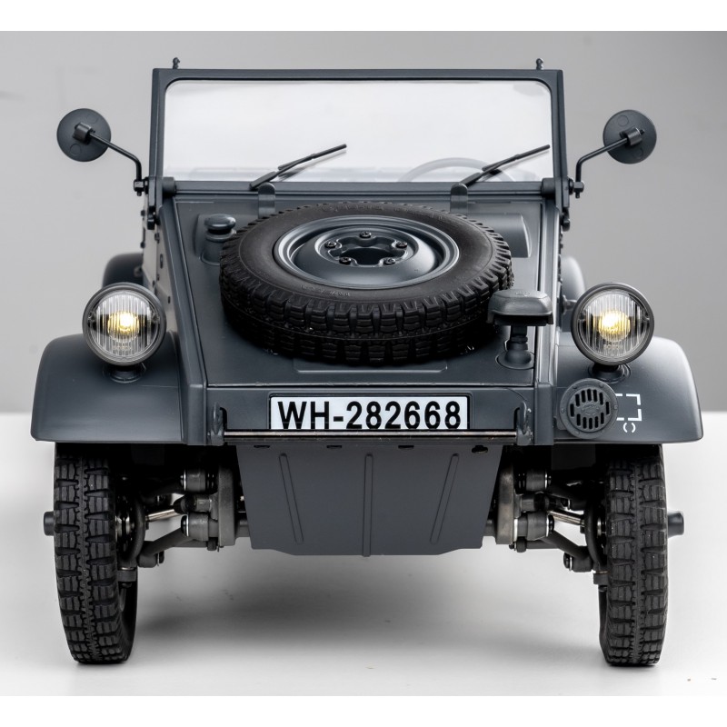 The dashboard displays the speed and timing of gear changes with the current mileage 203 km, this being about the distance driven from the Wolfsburg factory to Berlin. No doubt we are selling a new car here. You might find it hard to start your Typ82. Fear not as the start button is mounted on the lower left corner of the dashboard - just press it through the steering wheel. As with other models in the FMS scale range the steering wheel and axle are linked, when you steer the wheels, the steering wheel does the same. With 1/12 figures, a driver can be vividly displayed to add additional realism.
