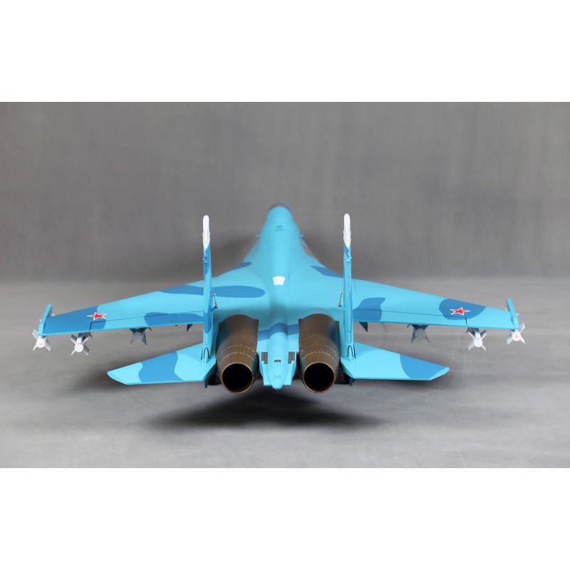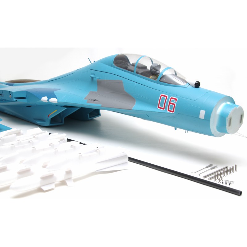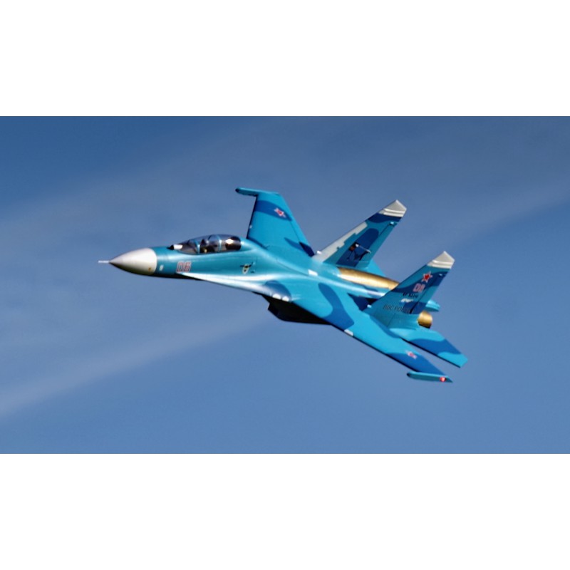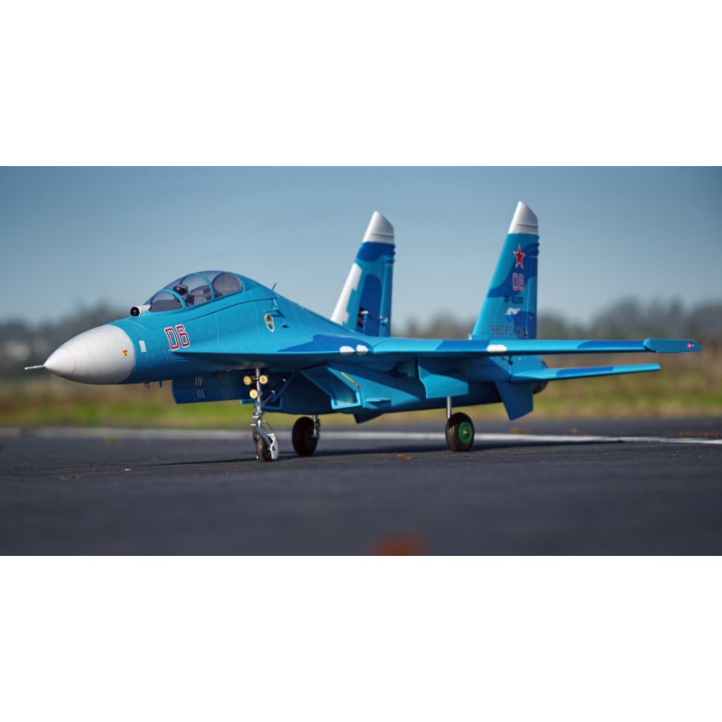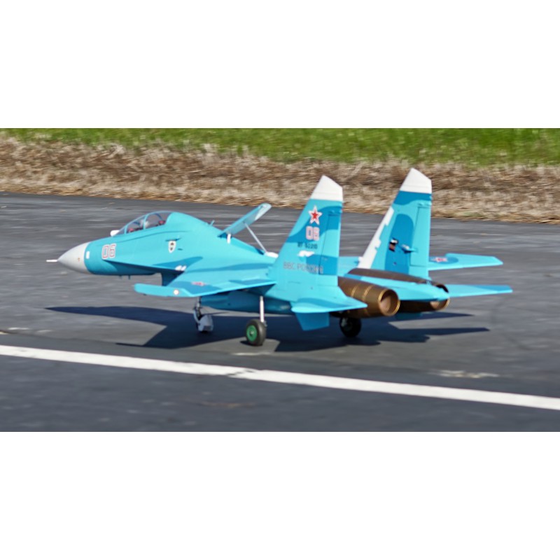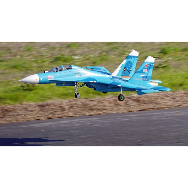 "Static" refers to the level of quality of the reproduction. FMS has captured the essence of this fighter. A reproduction of the functionality, with the large airbrake, navigation and landing lights, fully movable horizontal tailplanes, gear doors with sequencer, the landing gear assembly that withstands hard landings, and also a reproduction of the details such as the cabin, structural lines, removable weapons, pilot and easily recognisable scenery. All these details combine to make the Su-27 stand out both on the car park and in flight.