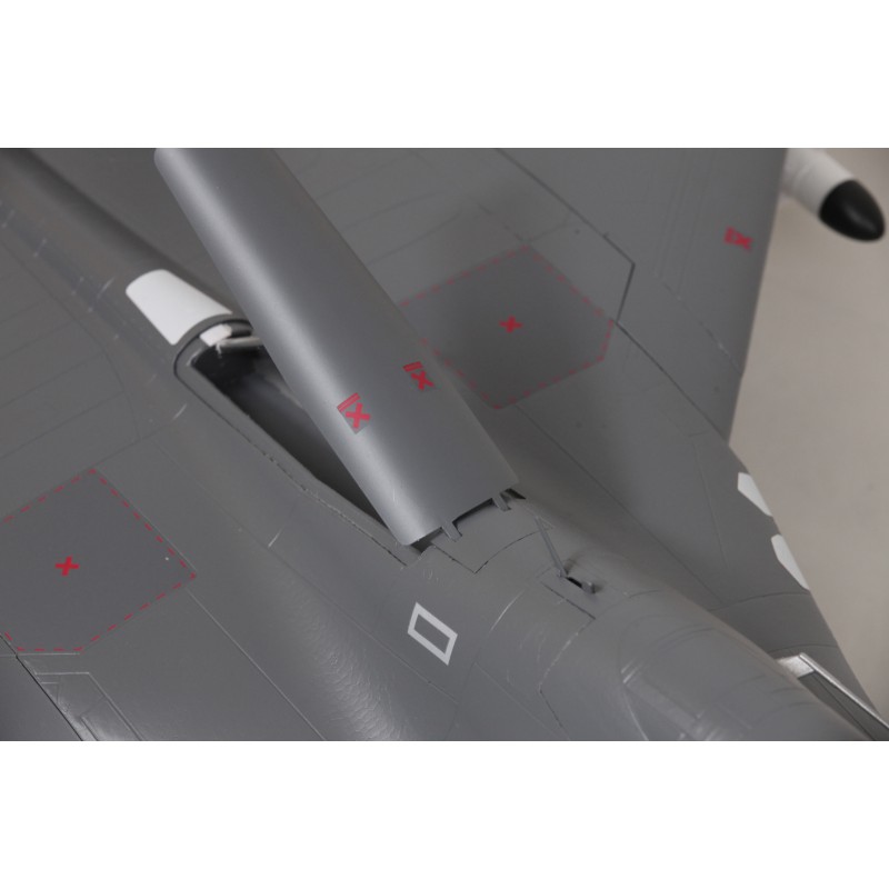 In terms of performance, Dual 70mm inrunner 12 bladed EDFs and high-quality 80A ESCs provide ample thrust for high speed, excellent vertical performance and resonating turbine engine sound. In addition, the pre-installed metal gear servos and ball link style control horns make for more responsive and precise operation.